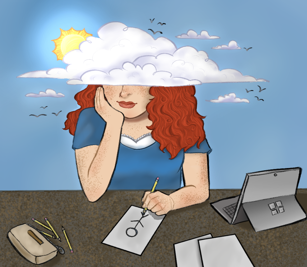 Digital illustration and self-portrait representing how it feels to live outside of the mind.
